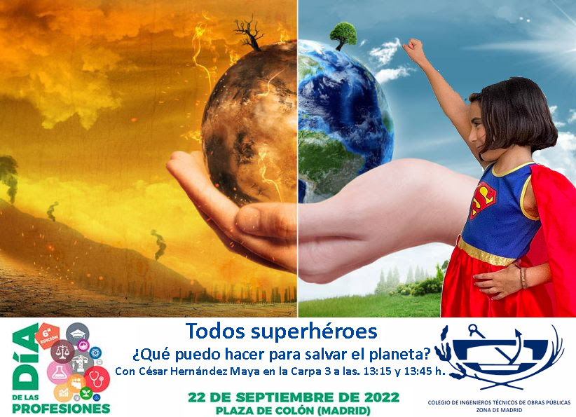 A las 13:15 y a las 13:45, nuestro compañero César Hernández Maya, Líder Climático de la Organización Internacional Climate Reality Project de Al Gore y ponente en la Cumbre del Clima COP25 de Madrid, impartirá un taller titulado “Todos superhéroes ¿qué puedo hacer en mi día a día para salvar el planeta?”. Con un perfil práctico y dinámico abordará el impacto de nuestra vida diaria en el medio ambiente, qué acciones podemos tomar como ciudadanos y cómo los profesionales de la Ingeniería Civil colaboramos en la transición ecológica.